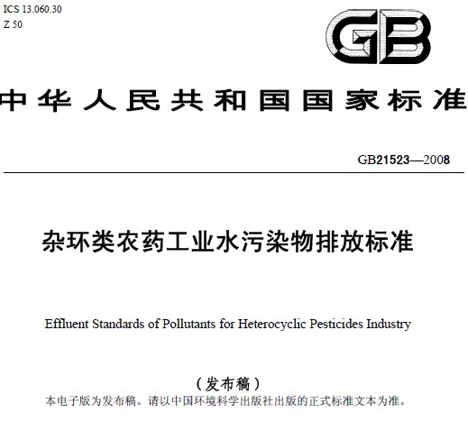 下載地址:03、雜環(huán)類農(nóng)藥工業(yè)水污染物排放標(biāo)準(zhǔn)GB 21523-2008.pdf