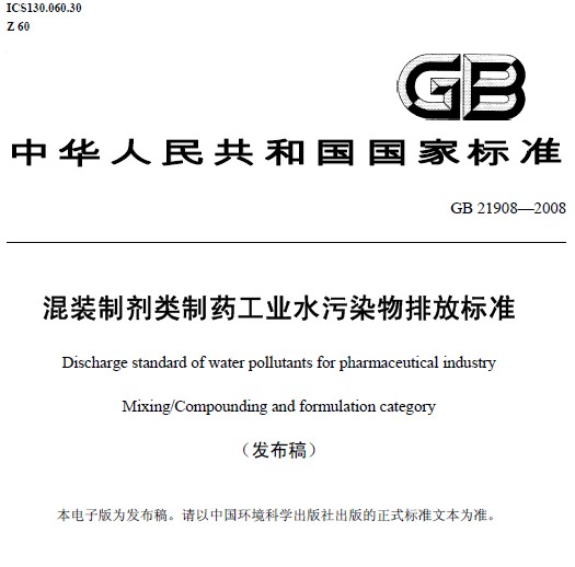 混裝制劑類制藥工業水污染物排放標準(GB 21908—2008)
