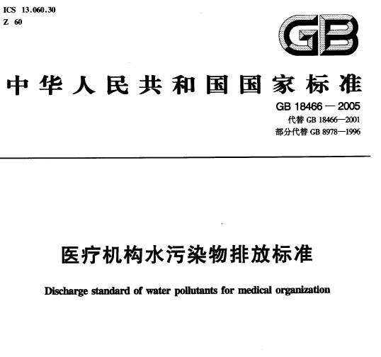 醫療機構水污染物排放標準(GB 18466-2005)
