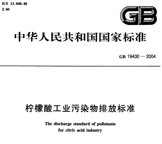 檸檬酸工業(yè)污染物排放標(biāo)準(zhǔn)(GB 19430-2004)