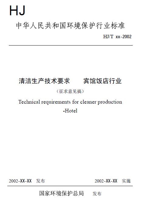《清潔生產(chǎn)技術(shù)要求 賓館飯店行業(yè)》(征求意見稿)