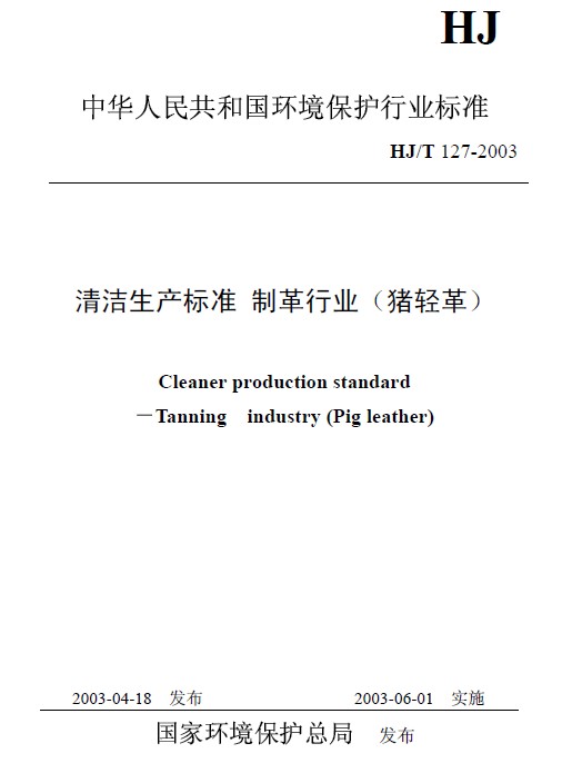 《清潔生產(chǎn)標準 制革行業(yè)(豬輕革)》