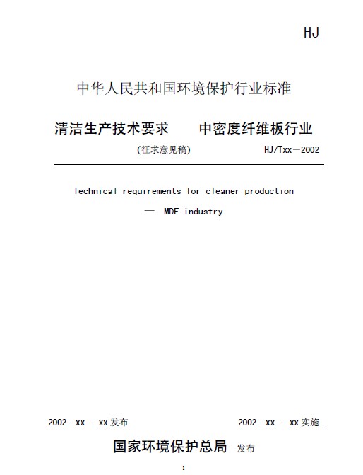 《清潔生產(chǎn)技術(shù)要求 中密度纖維板行業(yè)》(征求意見稿)