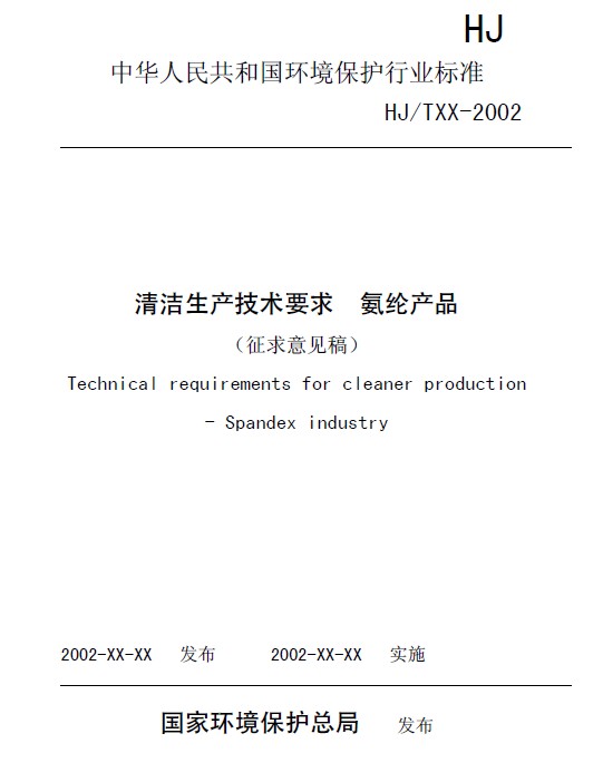 《清潔生產技術要求 氨綸產品》(征求意見稿)