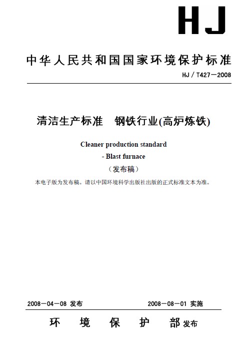 清潔生產(chǎn)標(biāo)準(zhǔn) 鋼鐵行業(yè)(高爐煉鐵).pdf