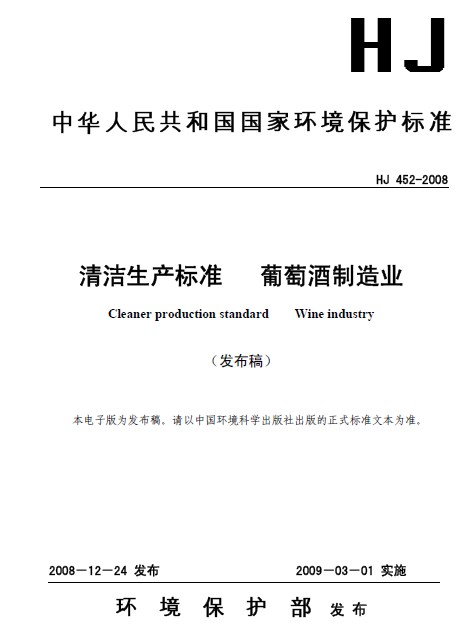 清潔生產(chǎn)標準 葡萄酒制造業(yè)